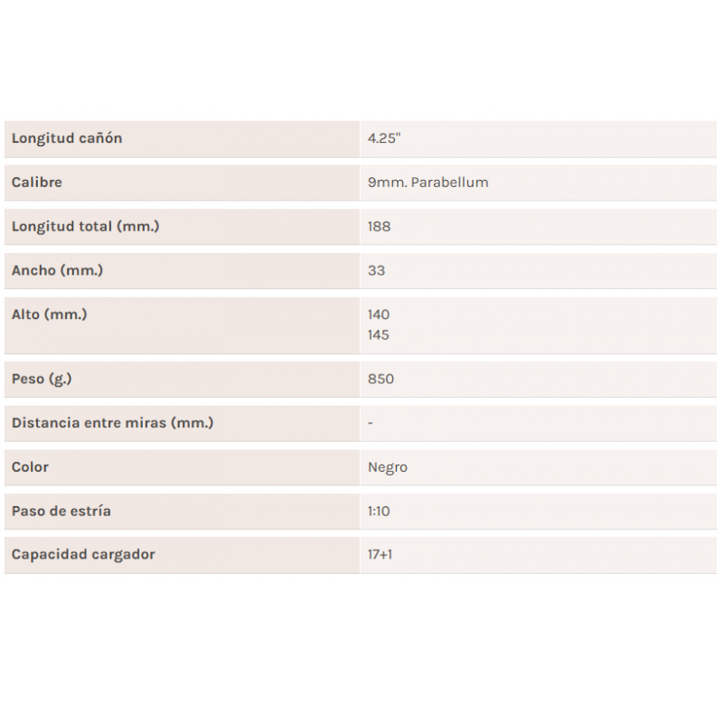Cacha con textura especial que permite controlar el arma incluso con manos húmedas.